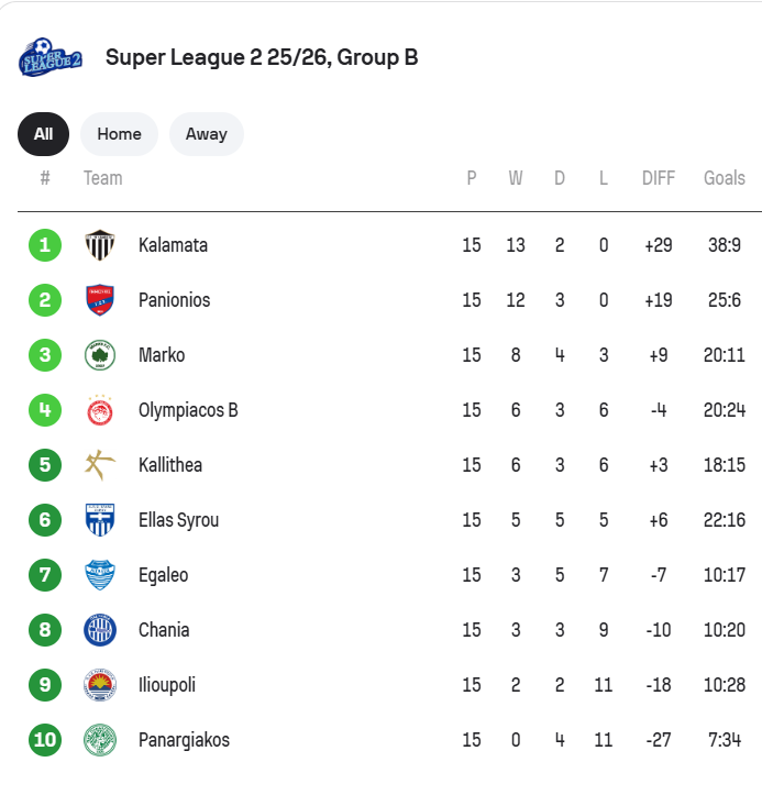Στο Β’ όμιλο Καλαμάτα και Πανιώνιος συνέχισαν με νίκες.