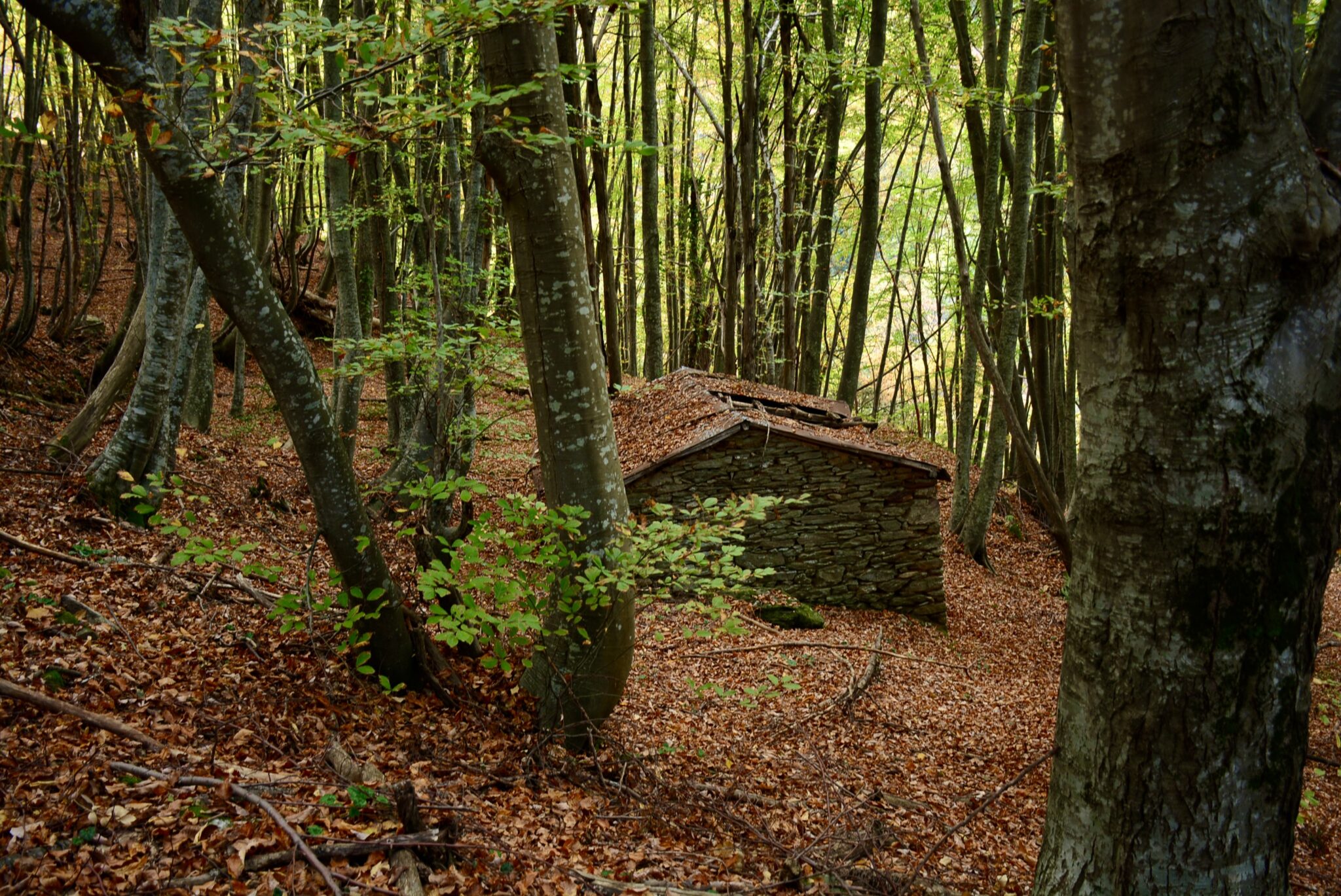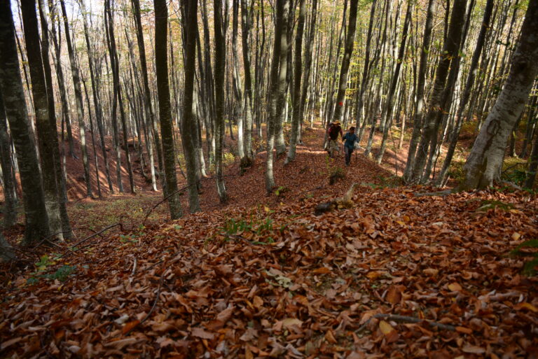 Όλη αυτή η βουνοπλαγιά είναι σκεπασμένη με ένα πυκνό δάσος από οξιές, καστανιές, πλατάνια στις ρεματιές και πολλές φτέρες. Παρά την απότομη κλίση της βουνοπλαγιάς στο μεγαλύτερο τμήμα της, τα ψηλόκορμα δέντρα και η έλλειψη πυκνών αγκαθωτών θάμνων επέτρεψαν σε κάποιους ορειβάτες του ΕΟΣ Βόλου να διασχίσουν την άνοιξη του 2016 αυτό το παρθένο τοπίο, μια πραγματική εξερεύνηση σε αχαρτογράφητο έδαφος. Την επόμενη χρονιά επανέλαβαν τη διάσχιση, και το 2019 αποφάσισαν να σηματοδοτήσουν τη διαδρομή με τα μέσα που διέθεταν, δηλαδή με κόκκινη μπογιά πάνω στους κορμούς των δέντρων και να διανοίξουν μερικά εντελώς φραγμένα τμήματα στα χαμηλότερα σημεία της βουνοπλαγιάς με πολύ κόπο και εντυπωσιακά αποτελέσματα, δημιουργώντας μια από τις ομορφότερες πεζοπορικές διαδρομές στο Πήλιο.