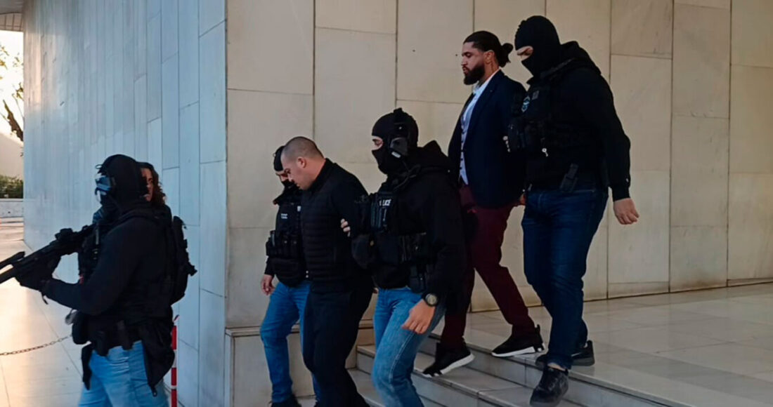 Η στιγμή που φεύγουν από τη ΓΑΔΑ και οδηγούνται στα δικαστήρια της Ευελπίδων: