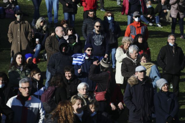 Δεκάδες συγκεντρωμένοι, που αντιτίθενται στην υποχρεωτικότητα του εμβολιασμού αλλά και σε άλλα μέτρα αντιμετώπισης της πανδημίας, διαδήλωσαν στο Πάρκο Ελευθερίας, στο κέντρο της Αθήνας, το μεσημέρι της Κυριακής.