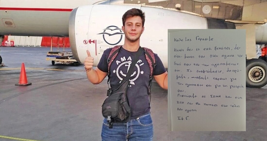 «Σήμερα μετά την πορεία για τη δικαιοσύνη για τα 57 αδικοχαμένα αγγελούδια, βρήκα κάτω από την πόρτα του γραφείου ένα γράμμα για τον ανιψιό μου, τον Γεράσιμο. Δεν έχω λόγια για τη συγκίνηση. Μέσα στον πόνο, υπάρχουν άνθρωποι που στέκονται δίπλα μας με διακριτικότητα, αγάπη και φως. Ένα μεγάλο ευχαριστώ από καρδιάς εκ μέρους όλης της οικογένειας».