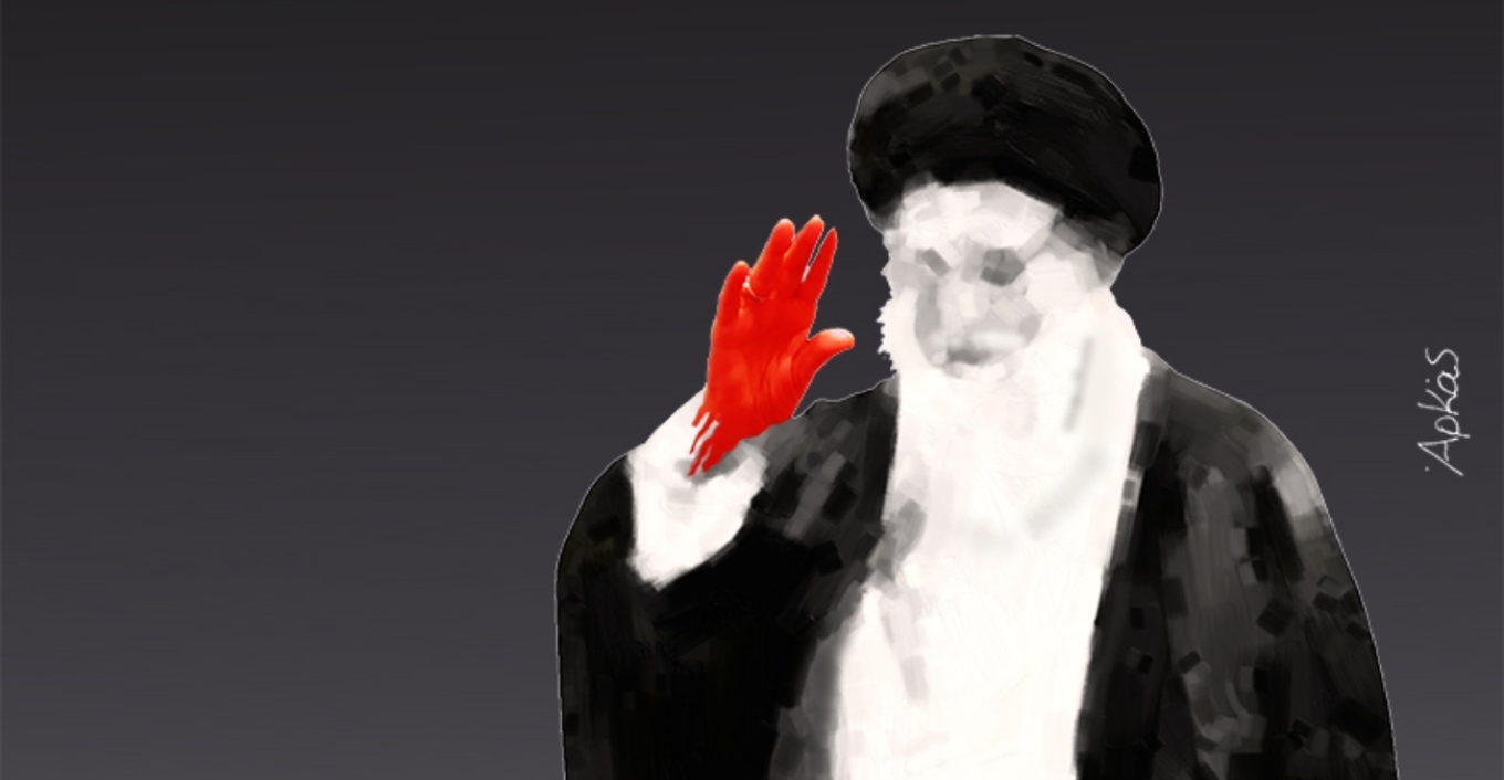 Στο σκίτσο απεικονίζεται ο ανώτατος θρησκευτικός ηγέτης του Ιράν, Αγιατολάχ Αλί Χαμενεΐ, με τα χέρια του βαμμένα με αίμα, ενώ το σχόλιο που συνοδεύει το έργο του γνωστού σκιτσογράφου αναφέρει: