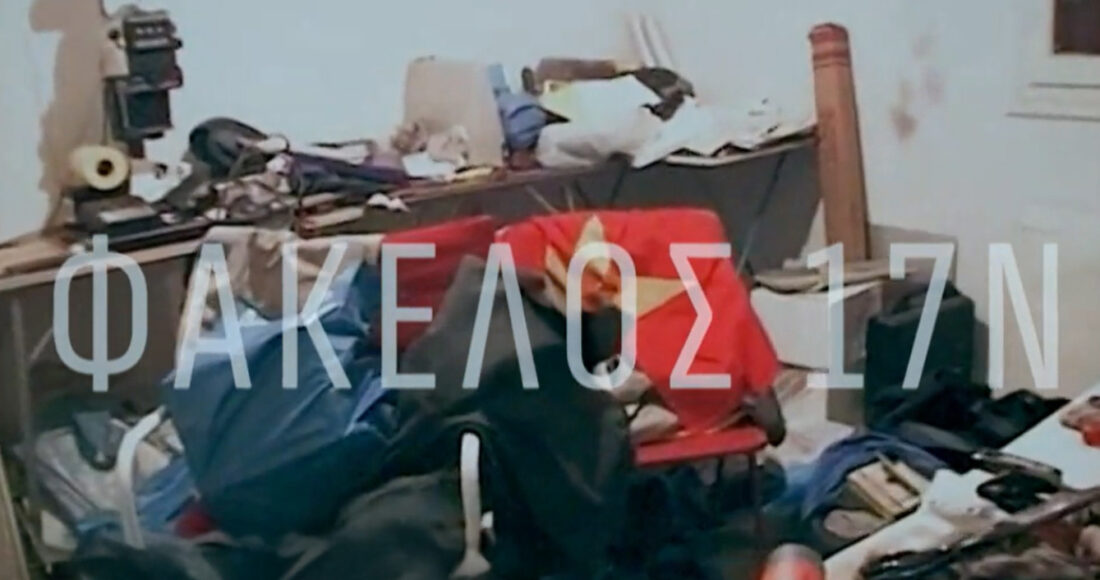 Εκεί οι αστυνομικοί αντίκρισαν τη σημαία της 17Ν, τα μπαζούκας που είχαν κλαπεί από το Πολεμικό Μουσείο, όπλα, περούκες, γραφομηχανές.