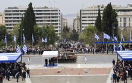 Λίγο πριν από τα Χριστούγεννα κι ένας άνδρας, που μεταμφιέστηκε σε Άγιο Βασίλη, εύχεται «Καλή Παραπομπή» (“merry impeachment”) στον Ντόναλντ Τραμπ.