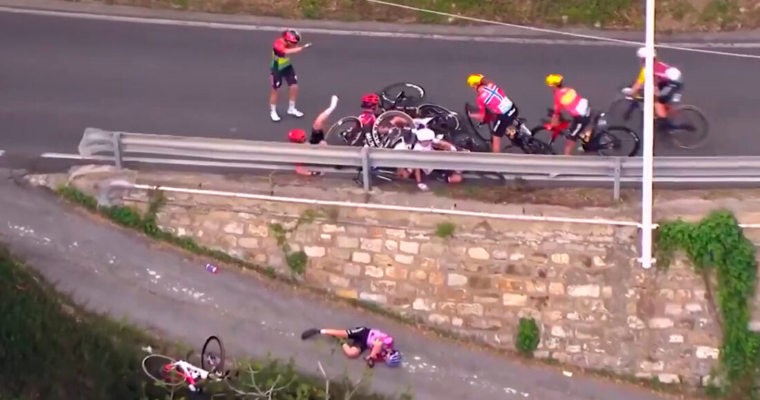 Η Ιταλίδα προσγειώθηκε σε χαμηλότερο σημείο του δρόμου μετά από πτώση αρκετών μέτρων και έμεινε ξαπλωμένη στο έδαφος. Η ομάδα της, η Laboral Kutxa, εξέδωσε λίγο αργότερα ανακοίνωση για να ενημερώσει σχετικά με την κατάστασή της.