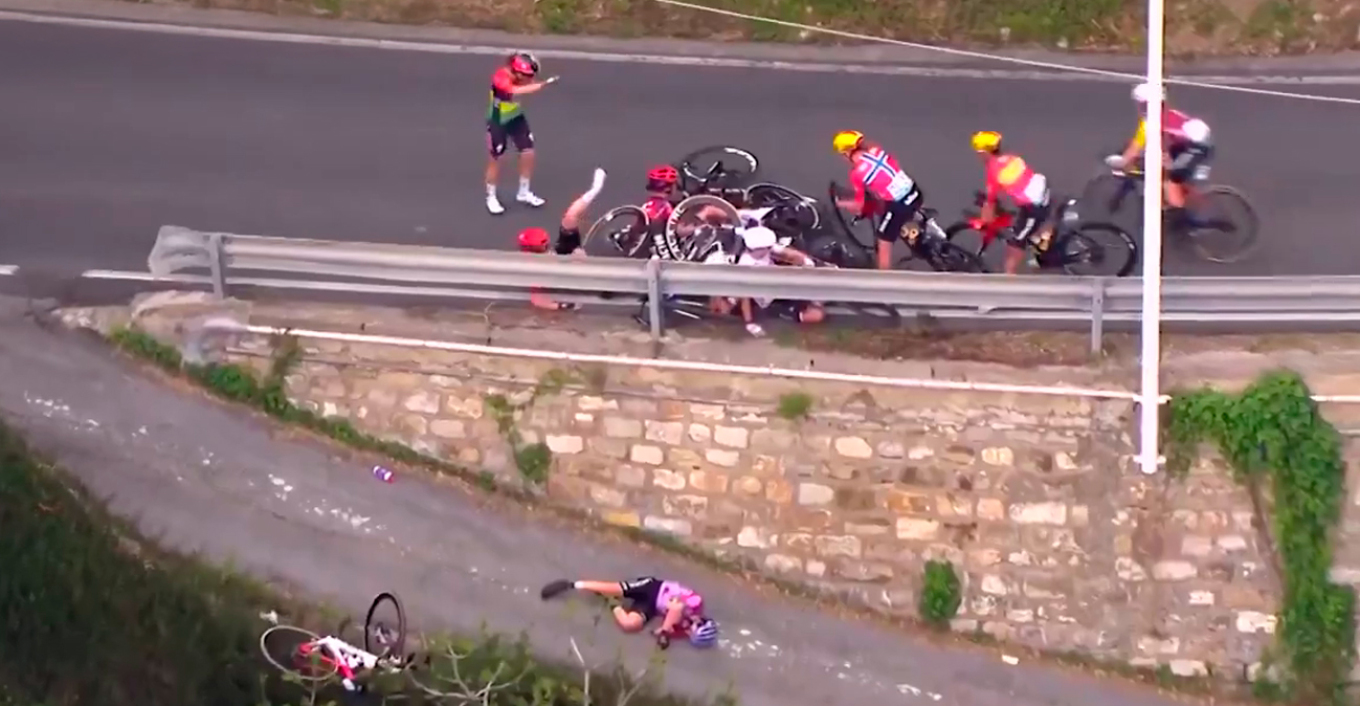 Η Ιταλίδα προσγειώθηκε σε χαμηλότερο σημείο του δρόμου μετά από πτώση αρκετών μέτρων και έμεινε ξαπλωμένη στο έδαφος. Η ομάδα της, η Laboral Kutxa, εξέδωσε λίγο αργότερα ανακοίνωση για να ενημερώσει σχετικά με την κατάστασή της.