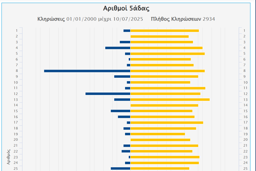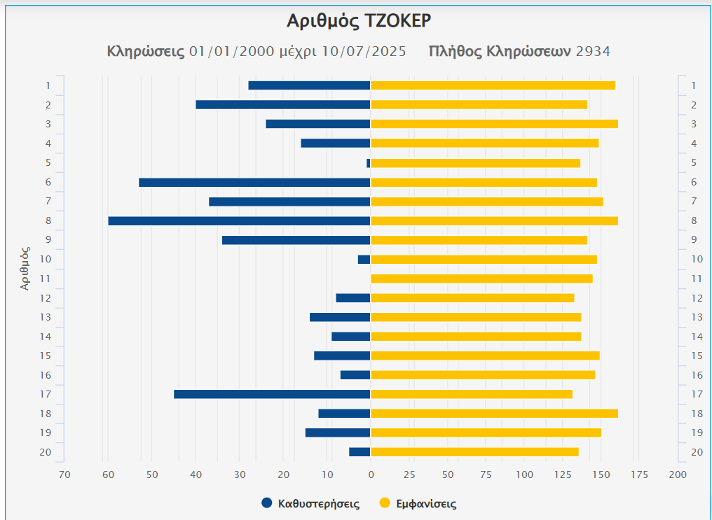 Τζόκερ: Ποιοι αριθμοί κληρώνονται πιο συχνά και πιο σπάνια τα τελευταία 25 χρόνια (γραφήματα)